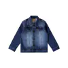 Possui fechamento com botões de pressão e bolsos falsos na parte frontal, com costuras visíveis decorativas. Além disso, possui efeito de lavanderia, que é um processo de lavagem que cria uma variedade de efeitos visuais e texturas.